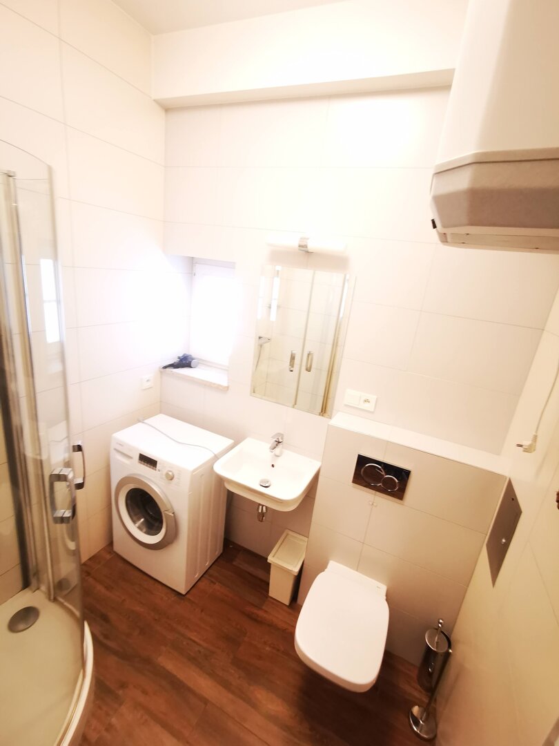 Moderno, con amplia ducha tipo walk-in, lavadora, secador de pelo y toallas limpias. La limpieza es una prioridad.